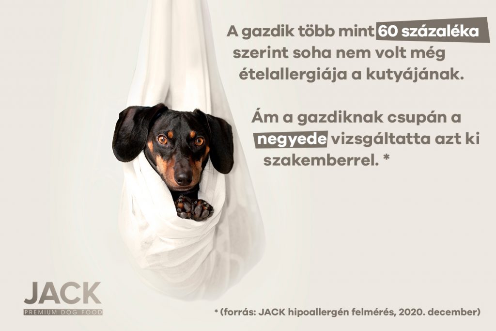 Az vagy, amit megeszel. Mindenki ismeri ezt az elkoptatott közhelyet, különösen napjainkban, amikor egyre több információ áll rendelkezésünkre a táplálkozásunkkal kapcsolatban. Ám sokan hiába figyelnek oda egyre jobban a saját étkezésükre, megfeledkeznek arról, hogy a kutyák számára ugyanilyen fontos az, hogy milyen minőségű tápanyagokat visznek be a szervezetükbe. Holott alig van olyan állattulajdonos, aki ne hallott volna arról, hogy egy kutya is lehet ételallergiás. Legalábbis a Jack Premium Dog Food által készített, több mint 1300 fős felmérés alapján az derül ki, hogy a magyar kutyabarátok mindössze alig 3 százaléka tartozik azok közé, akik nem tudják mit jelent az ételallergia a kedvenceik számára. Igaz, hogy majdnem minden 10. gazdi nincs tisztában a tünetekkel.